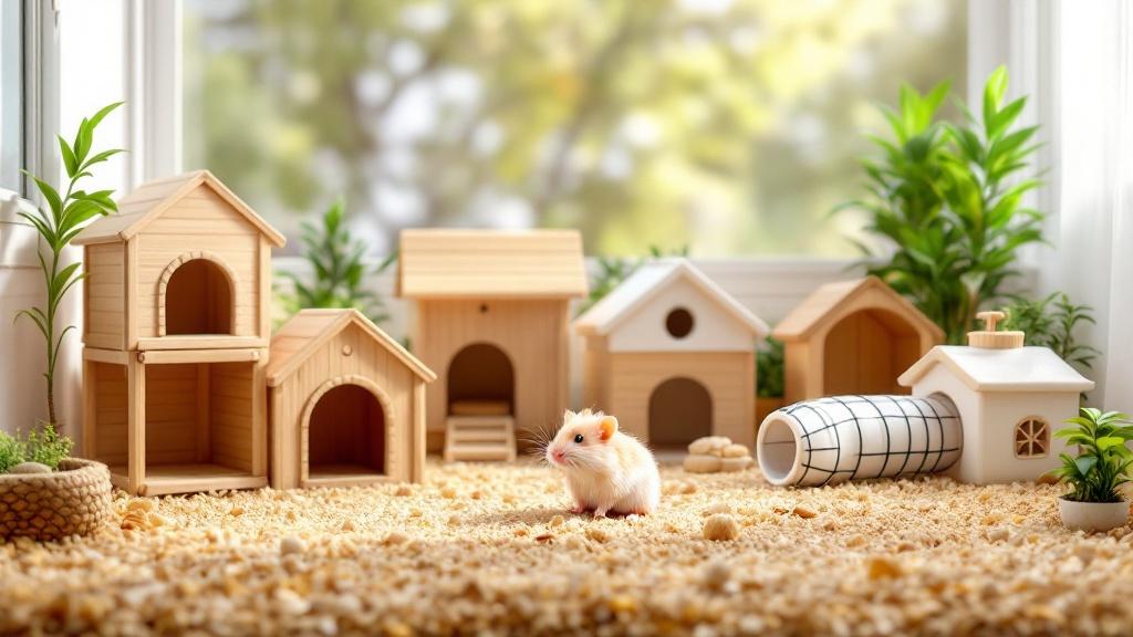 Kleine Einstiegsöffnungen bieten Schutz und Geborgenheit. Scharfe Kanten und giftige Materialien sollten vermieden werden. Empfehlenswert sind Produkte mit abnehmbarem Dach für eine einfache Reinigung. Kombinierte Hamster-Garnituren aus mehreren Häusern und Tunneln ermöglichen eine abwechslungsreiche Einrichtung und fördern die Aktivität und das natürliche Verhalten des Hamsters.