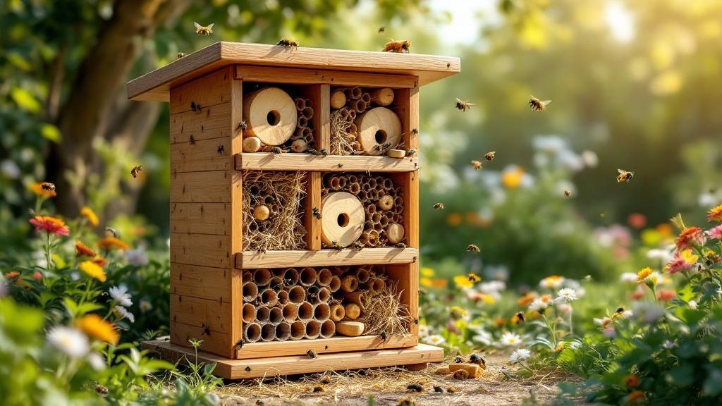 - Kombinierte Nisthilfen: Mehrkammer-Insektenhotels bieten Lebensräume für mehrere Insektenarten.