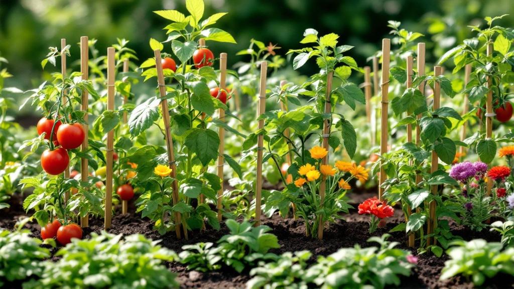 - Bambus: Flexibel, leicht, wiederverwertbar, besonders geeignet für Tomaten und Kletterpflanzen