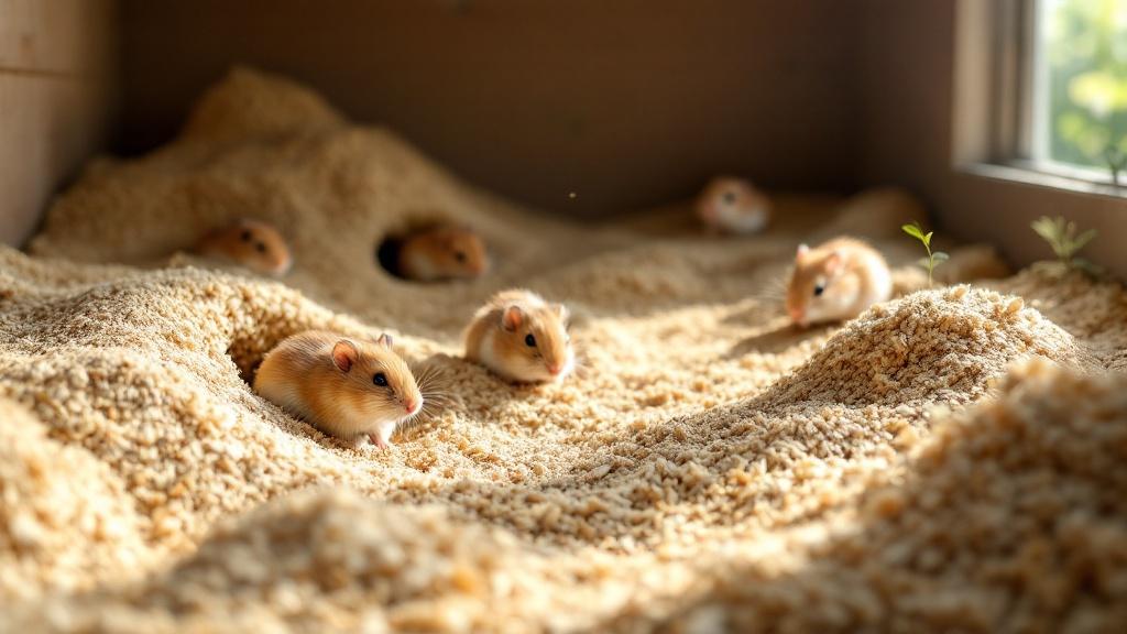 | Papierstreu | Leicht, absorbierend, geruchslos | Unterteilung, Behausung |