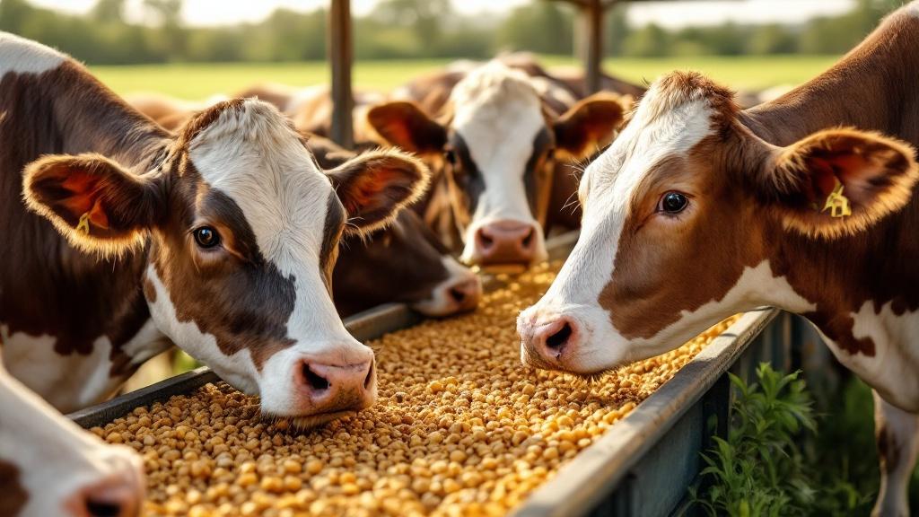 Ein kleiner Milchviehbetrieb mischt Maisschrot mit hochwertigem Mineralfutter für leistungsstarke Kühe, um sowohl Energie- als auch Mineralstoffbedarf zu decken. Mastbullen profitieren von pelletiertem Kraftfutter mit erhöhtem Getreideanteil und Sojaschrot für schnelle Gewichtszunahmen. In der Aufzuchtphase werden leicht verdauliche Müslifutter eingesetzt, die für einen guten Start ins Wachstum sorgen.
