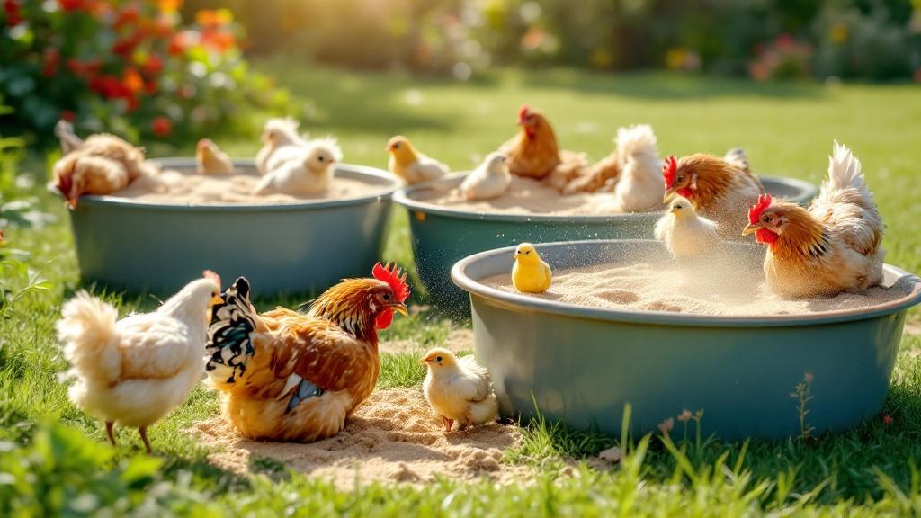 - Hühner lieben Scharren und Wälzen in trockenen Sandbädern zur Gefiederpflege.