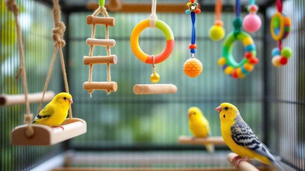 | Holzschaukel mit Seil | Wellensittiche, Kanarien, Nymphensittiche | Fördert Koordination, natürliche Beschäftigung |