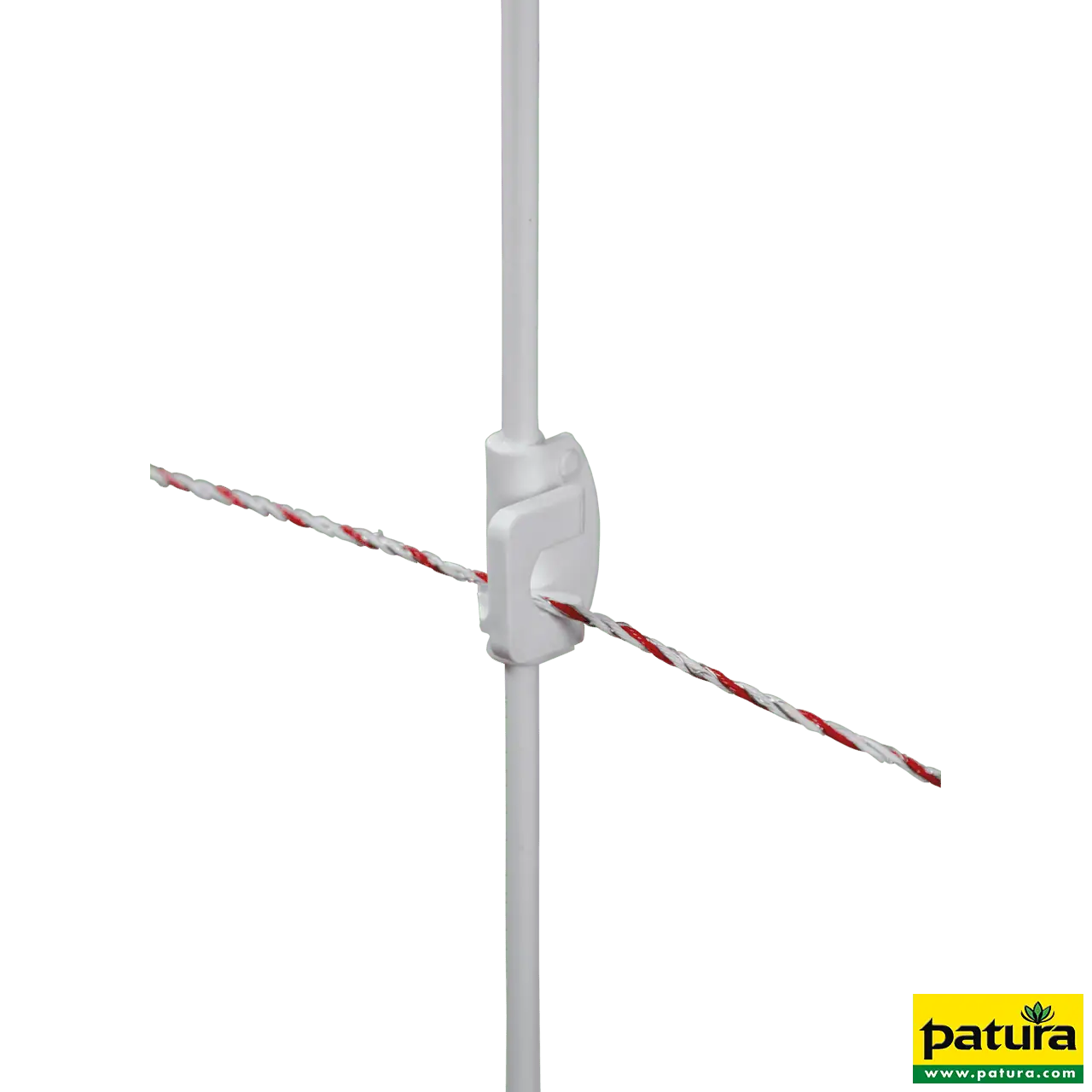 - Mit 2 Isolatoren je Pfahl, geeignet für Breitbänder bis 12,5 mm, Litzen und Seile