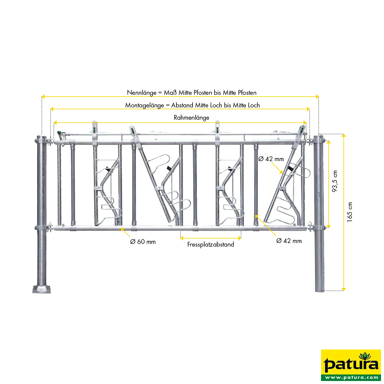 Dieses Sicherheits-Selbstfangfressgitter bietet optimale Sicherheit für Milchkühe und Mutterkühe in allen Stalltypen. Mit 5 Fressplätzen auf 3,4 m Länge überzeugt das Gitter durch eine leise Verriegelung mit kunststoffbeschichtetem Riegelbolzen und eine verstellbare Halsweite für höchsten Tierkomfort.